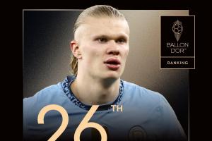 曼城前锋哈兰德排名第26名,这是他第五次获得提名,哈兰德生涯最高排名为2023年的第二名。
