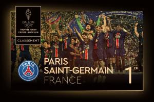 体育资讯9月23日讯 金球奖颁奖典礼,巴黎圣日耳曼当选最佳男足俱乐部。