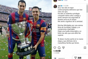 体育资讯9月27日讯 37岁的西班牙传奇中场布斯克茨宣布将在本赛季结束后退役,他和哈维、伊涅斯塔曾在巴萨组成了坚不可摧的中场三角。在社交媒体上,哈维为老友送上了祝福。