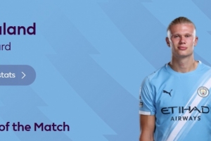 本场比赛哈兰德打进2球,并有1次助攻,赛后他也当选英超官方球迷票选全场最佳球员。