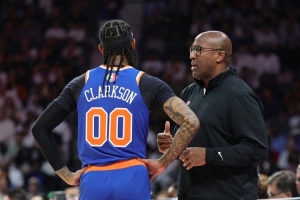 上半场比赛中,尼克斯新援克拉克森替补出战9分47秒,投篮6中2,三分2中0,罚球1中1,得到5分,另有2次失误,其他数据均挂零,正负值+3。
