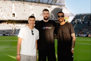 快船官方配文写到:“周日足球之夜,祖巴茨、博格丹-博格达诺维奇、科林斯一起现身观看今晚的洛杉矶FC比赛!”