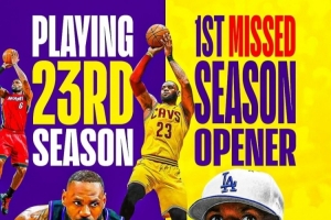 詹姆斯生涯首次缺席常规赛揭幕战 此前他已经连续出战22次!