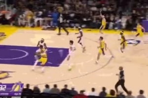 GIF-八村塁反击被切球,裁判吹出界;湖人挑战成功,阿夫迪亚犯规