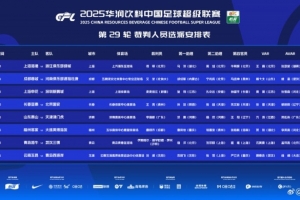 体育资讯10月31日讯 中国足协公布了中超第29轮裁判选派名单,其中傅明执法海港vs浙江,沙特裁判穆罕默德-萨米执法海牛vs三镇。