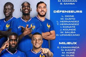 法国名单:姆巴佩领衔,坎特、萨利巴入选,登贝莱、琼阿梅尼伤缺